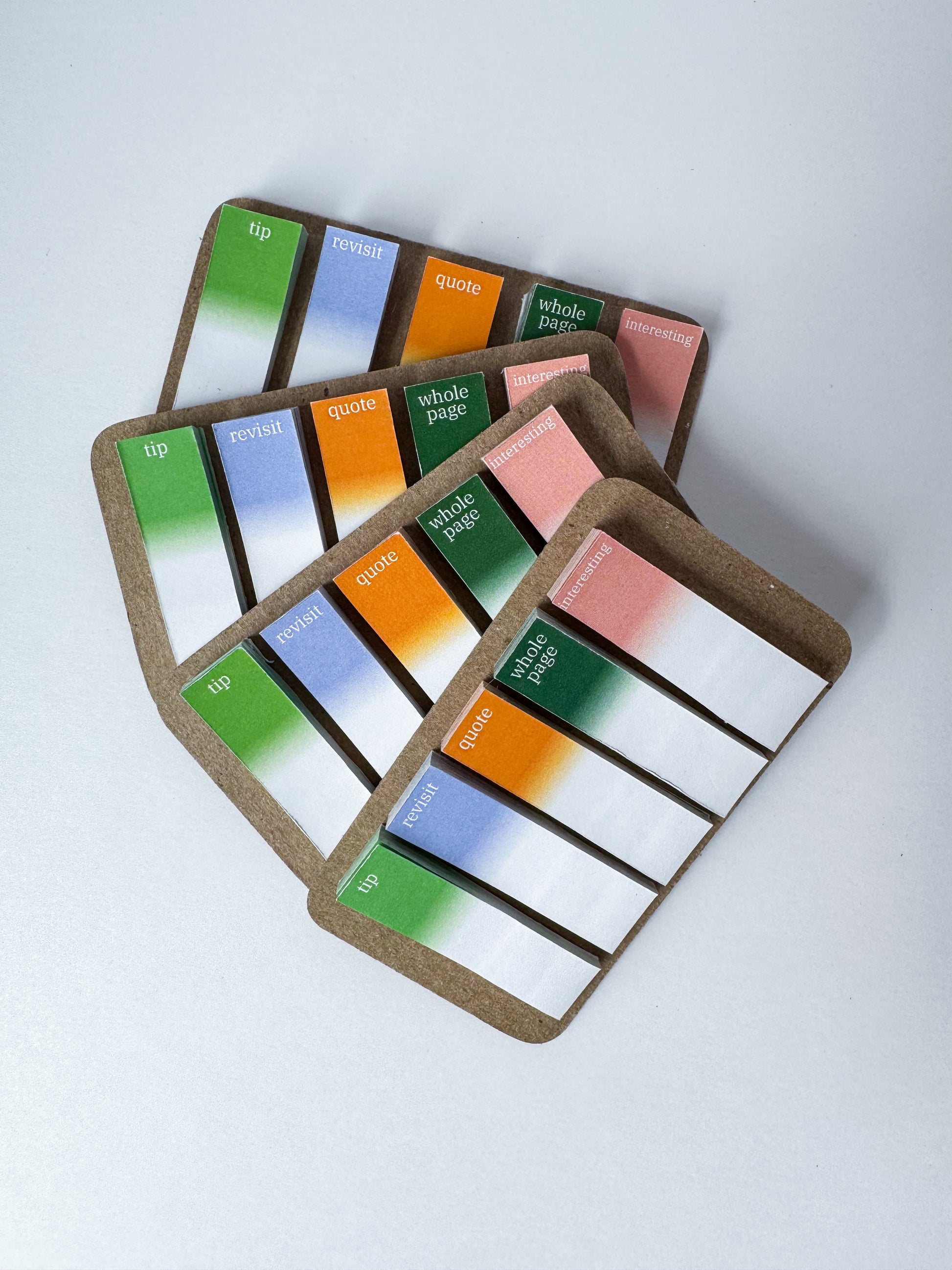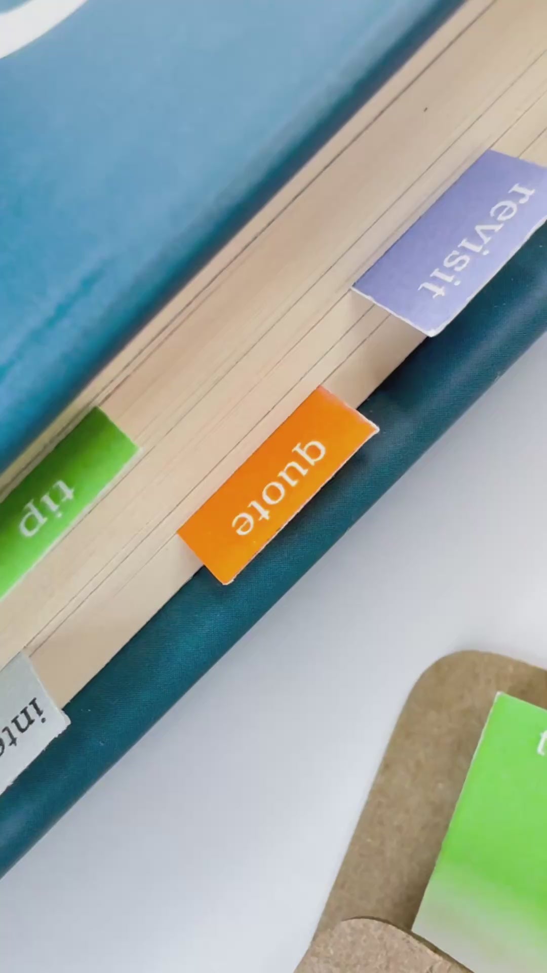 Want to quickly find that incredible quote you read last week? No problem! Simply find the quote tab you used and flip the book open to your saved spot. And with labels on both sides, you’ll always know what you’ve marked, no matter how you're holding the book!